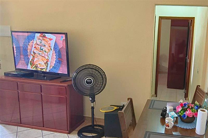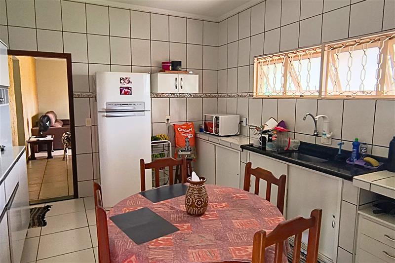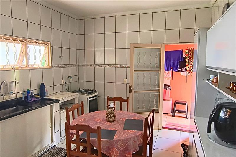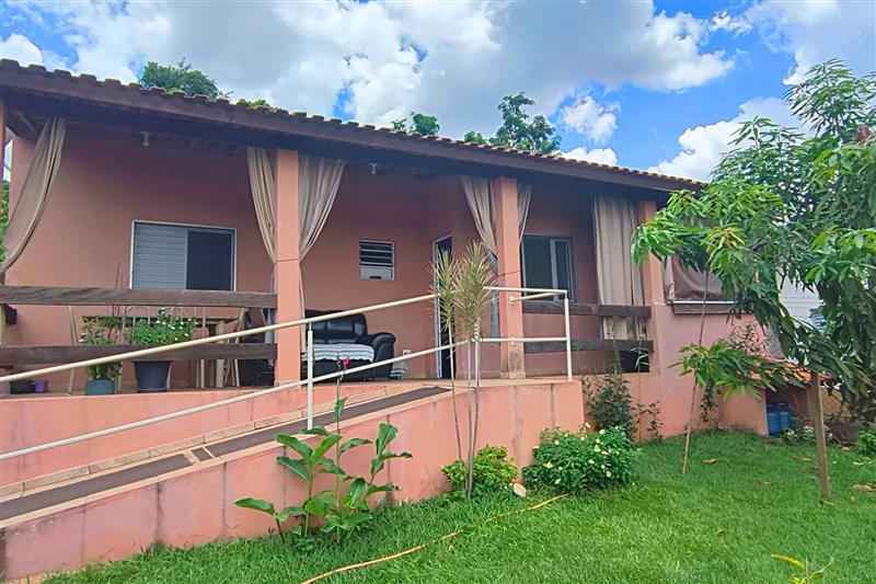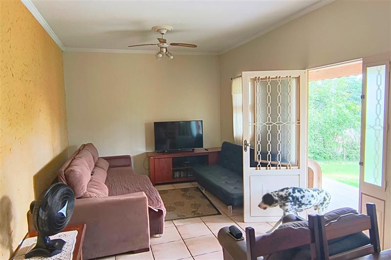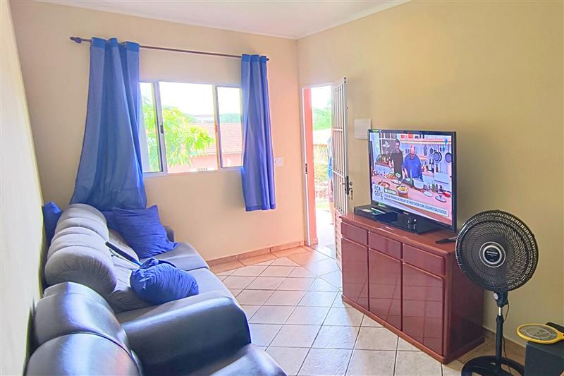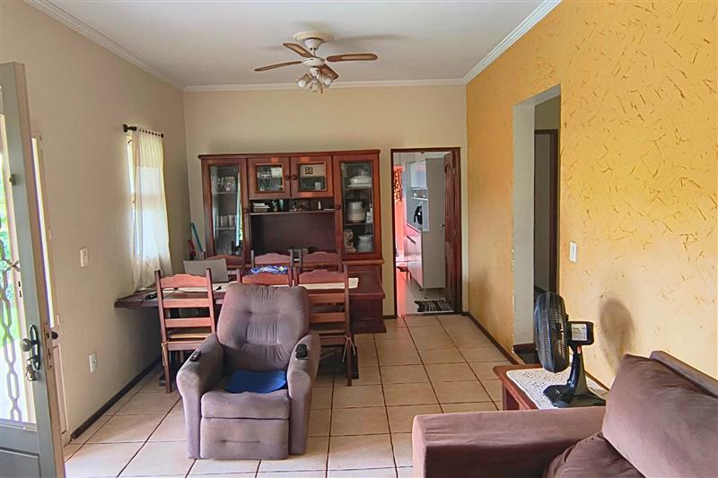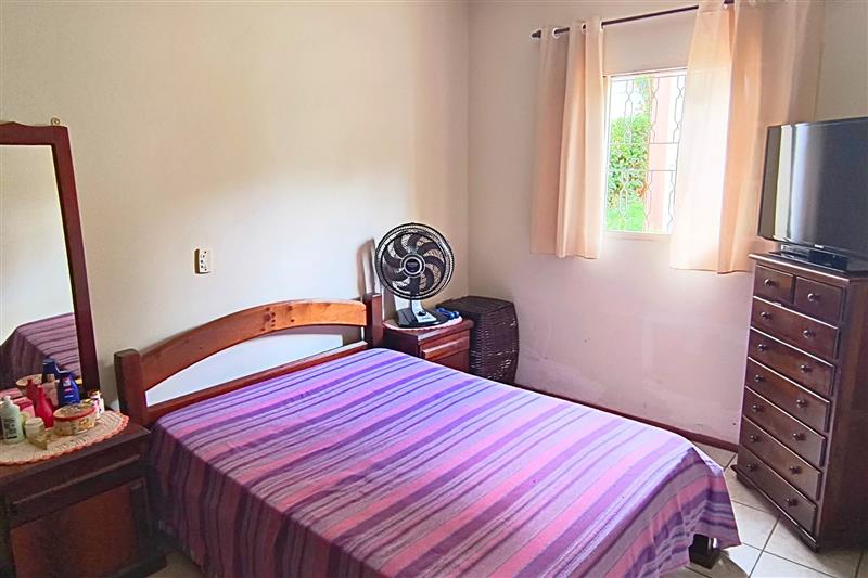 - A casa principal é térrea com 3 dormitórios (1 suíte), 2 banheiros, sala de estar e jantar, cozinha, lavanderia e ventiladores de teto nos quartos e na sala.